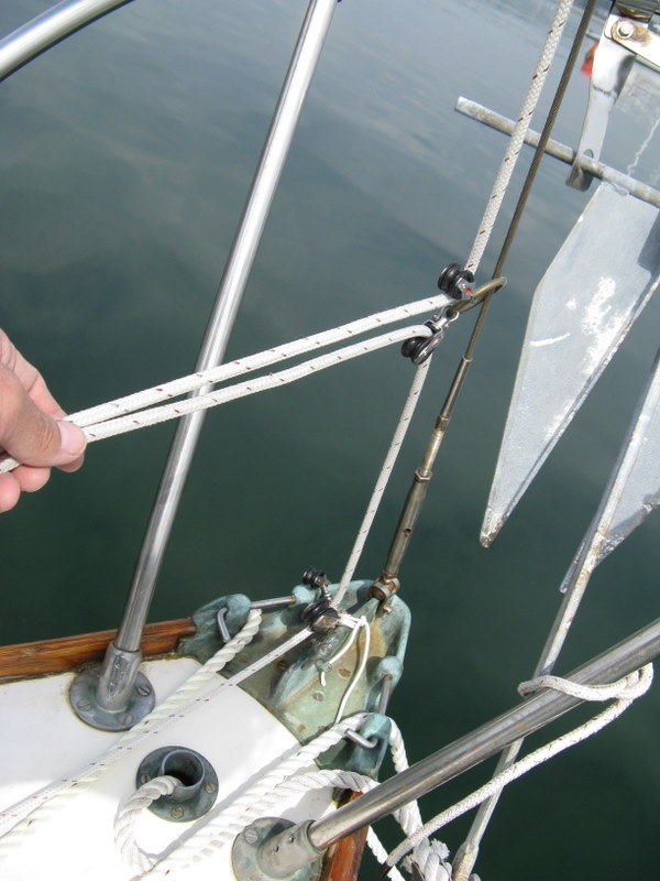 Gerr Downhaul: Halyard, downhaul and shackle on forestay